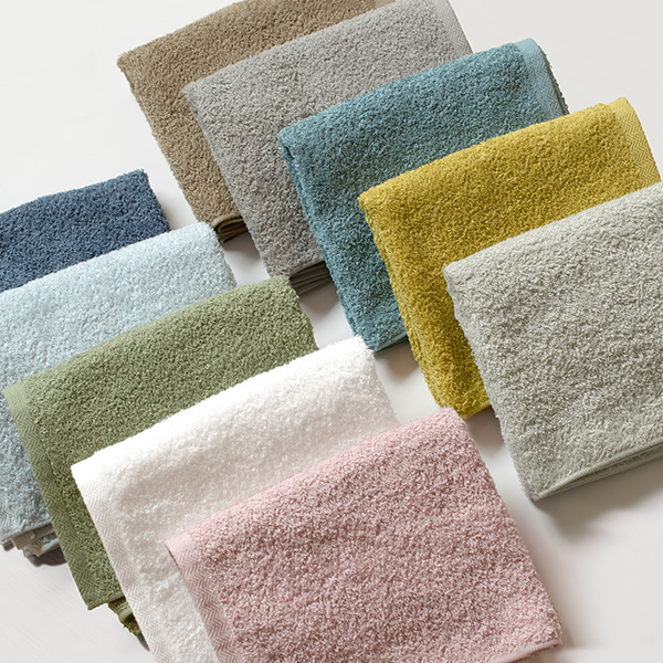 私のおすすめは海をモチーフにした「シオン」です。普段は洗面所で顔や手を拭くのに使っていますが、ふわふわさらさらの触り心地がたまりません。