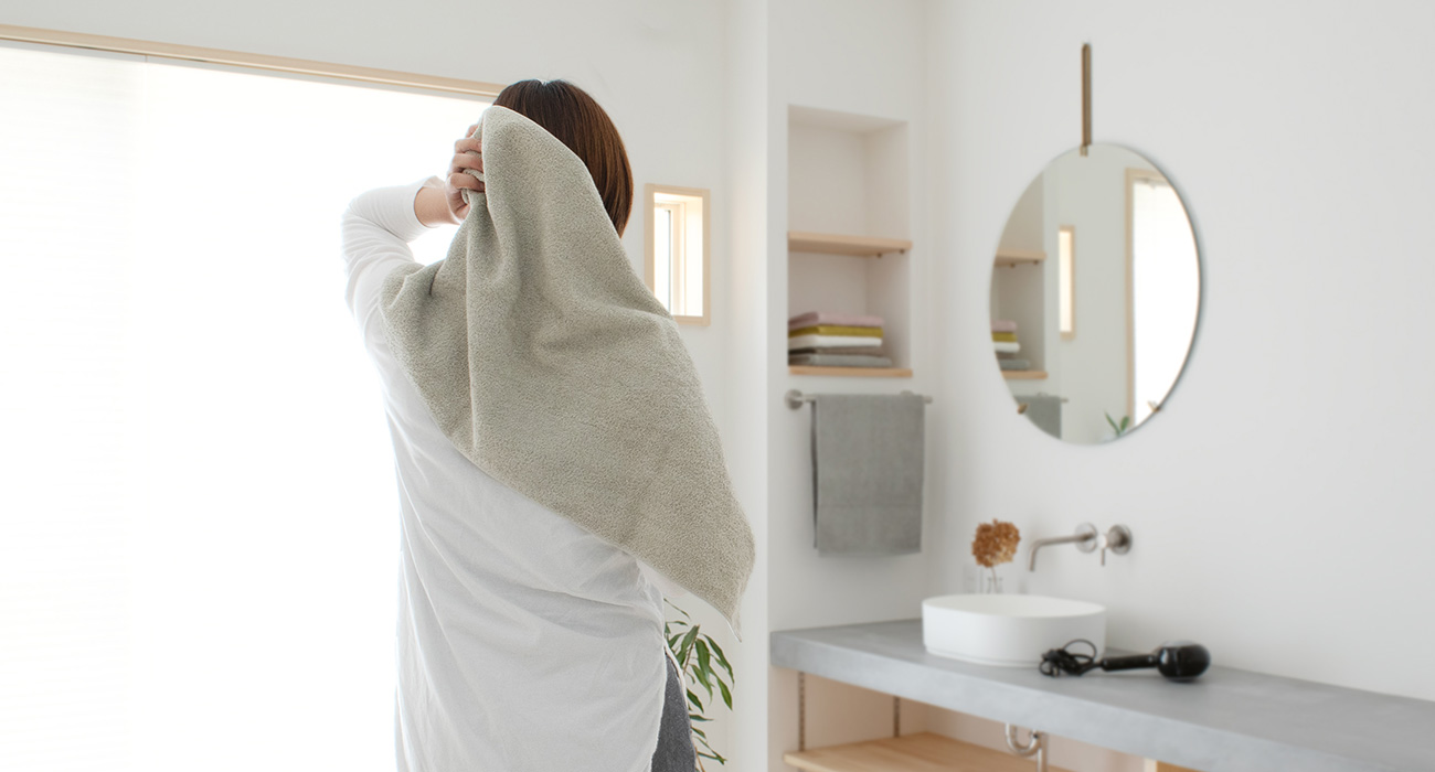 手をよく拭くキッチンや洗面所などで大活躍!速乾性も魅力の一つ!乾きやすくて衛生的に使えます。
