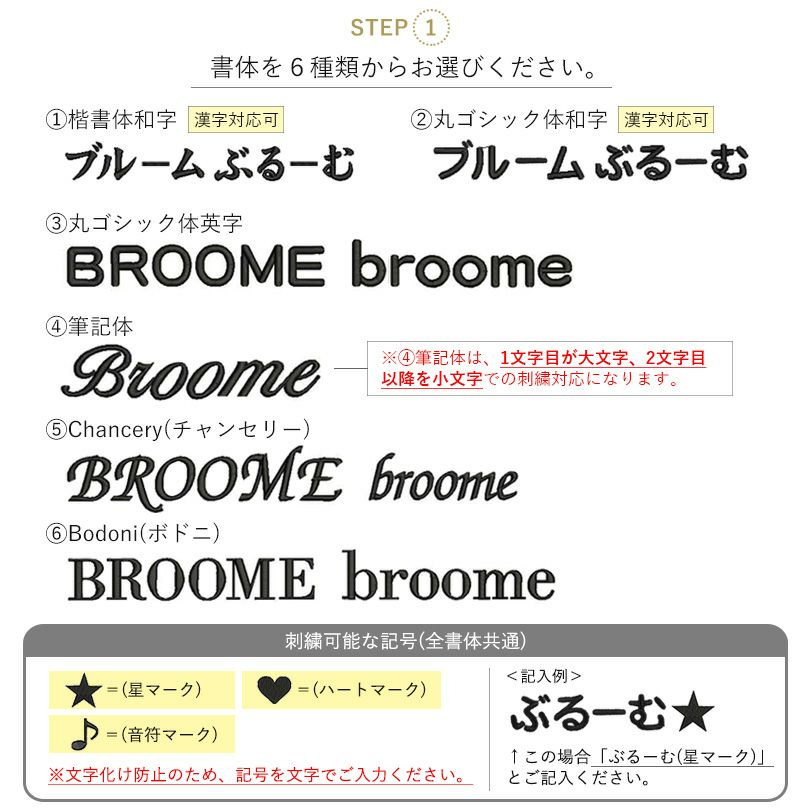 ご希望のお名前やイニシャル、メッセージを入れて特別感アップ!書体も選べ、刺繍カラーは15色ご用意!記念品としてもおすすめのアイテムです。