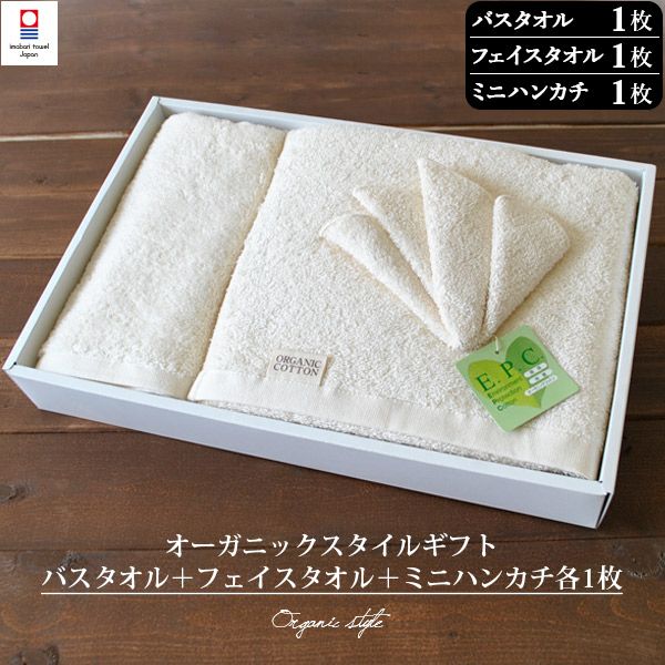 (ギフト) 今治タオル バスタオル1枚+フェイスタオル1枚+ミニハンカチ1枚 オーガニックスタイル タオル 送料無料 ※紙袋付き