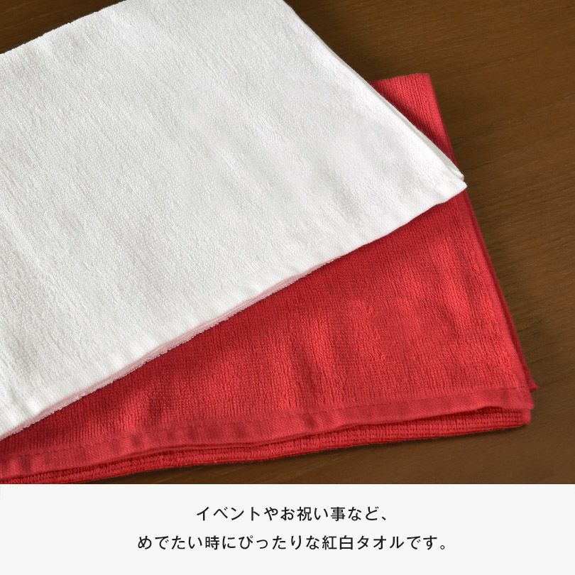 (ギフト) フェイスタオル 2枚セット 紅白タオル 無地 日本製 タオル ※紙袋付き 鶴亀タオル つるかめタオル 敬老の日 還暦祝い