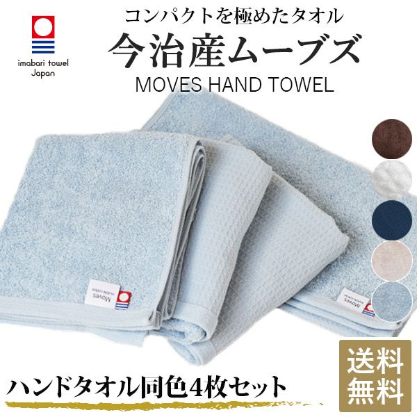 今治タオル ハンドタオル 4枚セット MOVES タオル 送料無料 (ポスト投函) 無地 コンパクト 速乾 薄手 まとめ買い ムーブズ